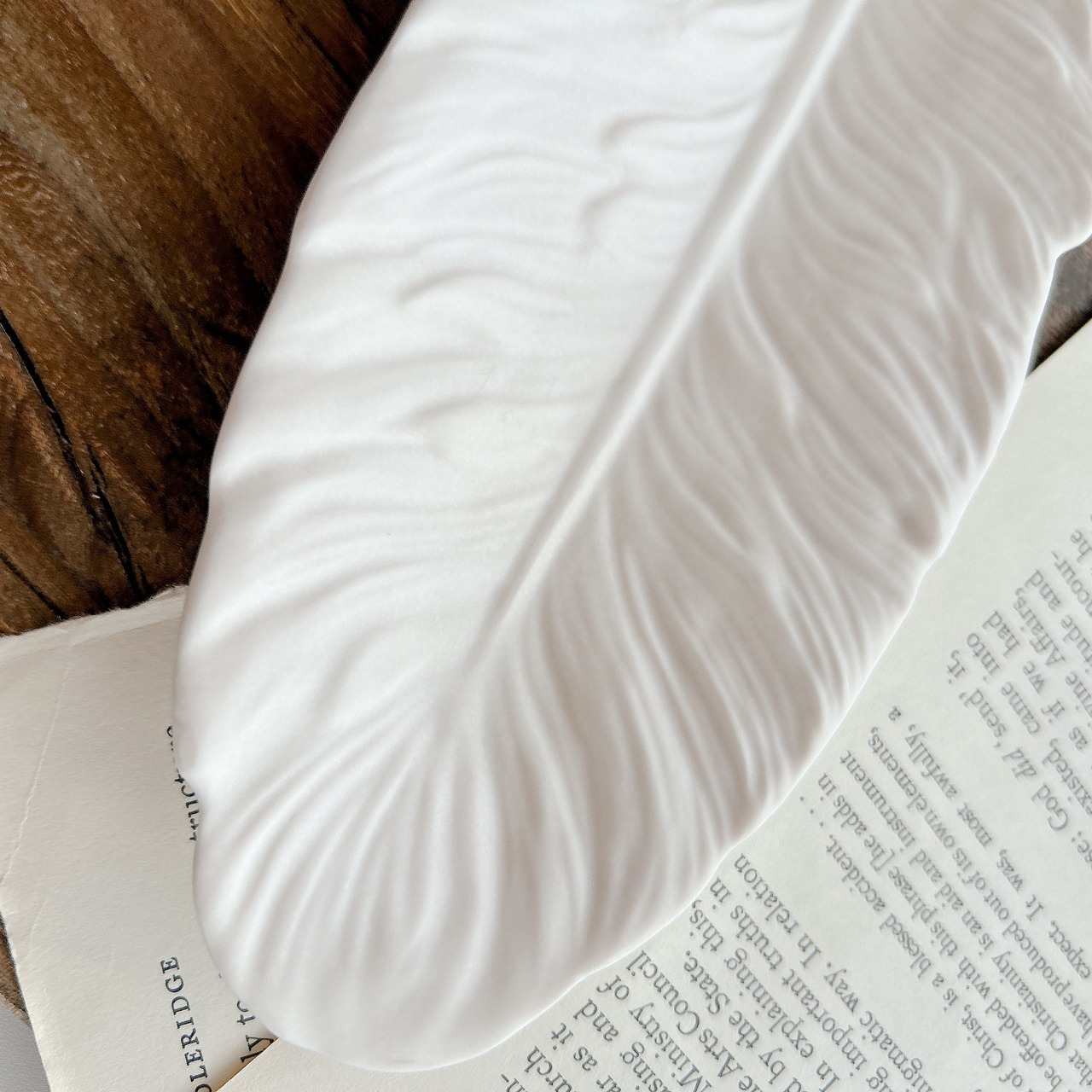 一枚の羽根がすっと伸びた、ロングタイプのトレイ。